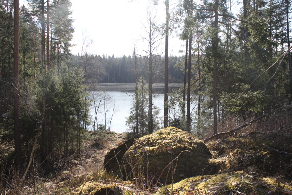Paikoin jyrkkärantainen järvi. Ei ole selvää, mikä ympäröivistä mäistä on Hirmuvuori, mutta todennäköisesti koillispuolella oleva, jossa on kallion laella pieni lähde.